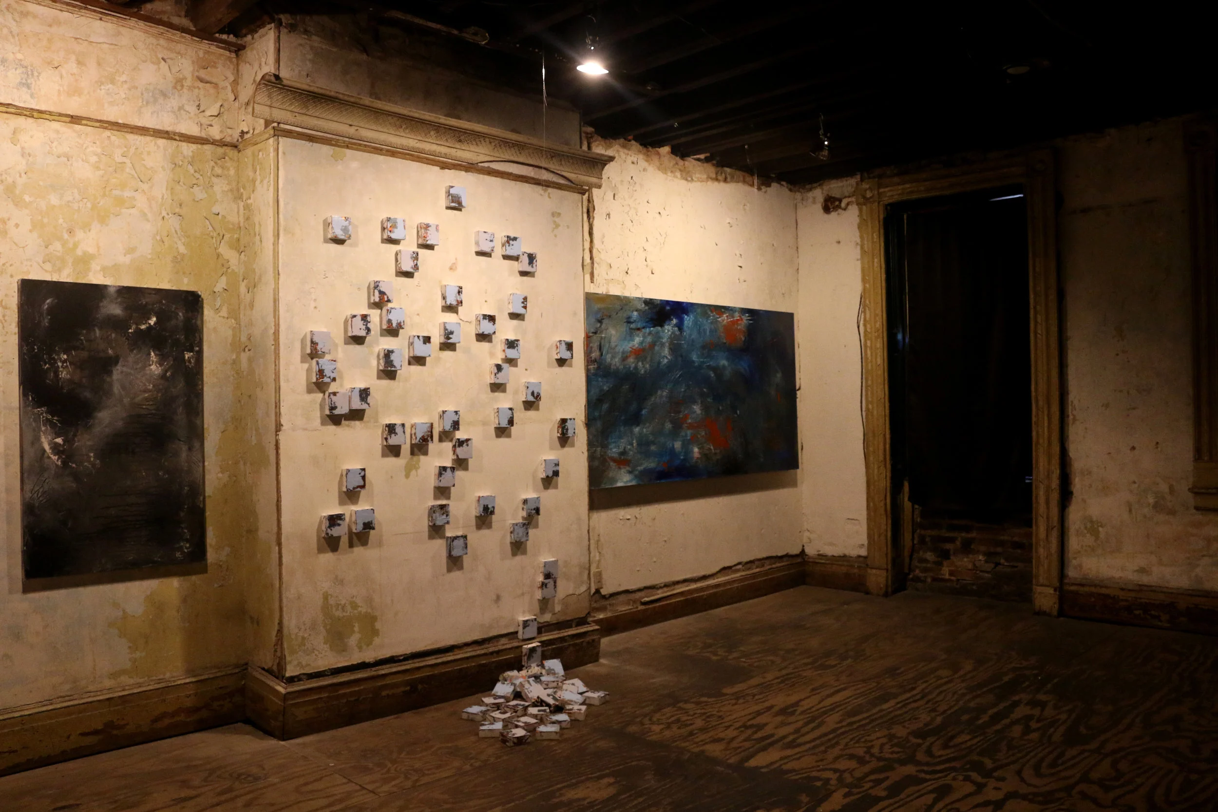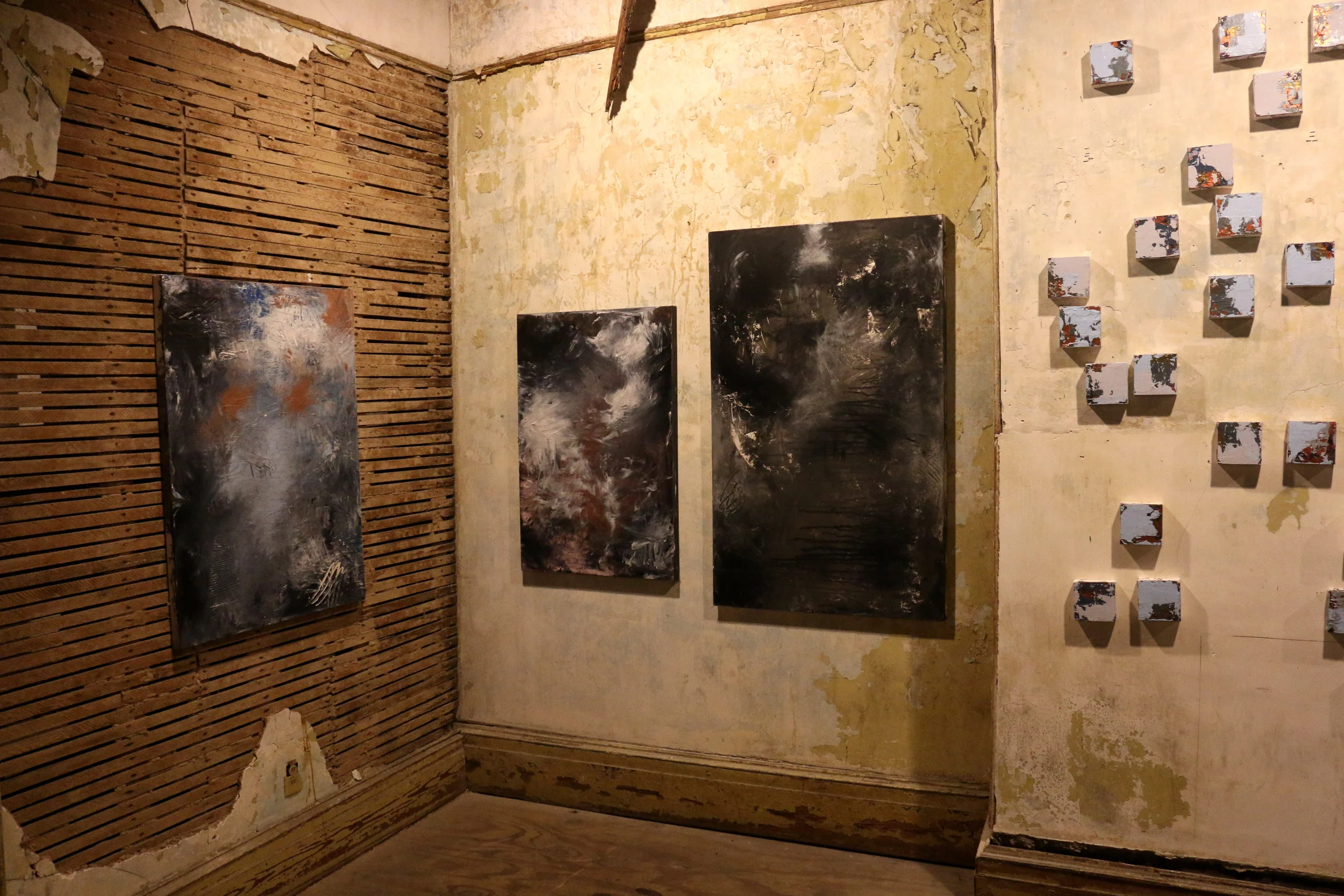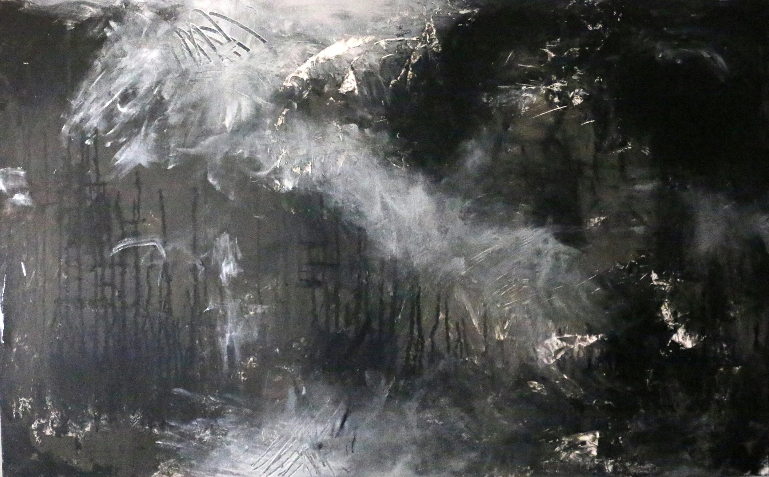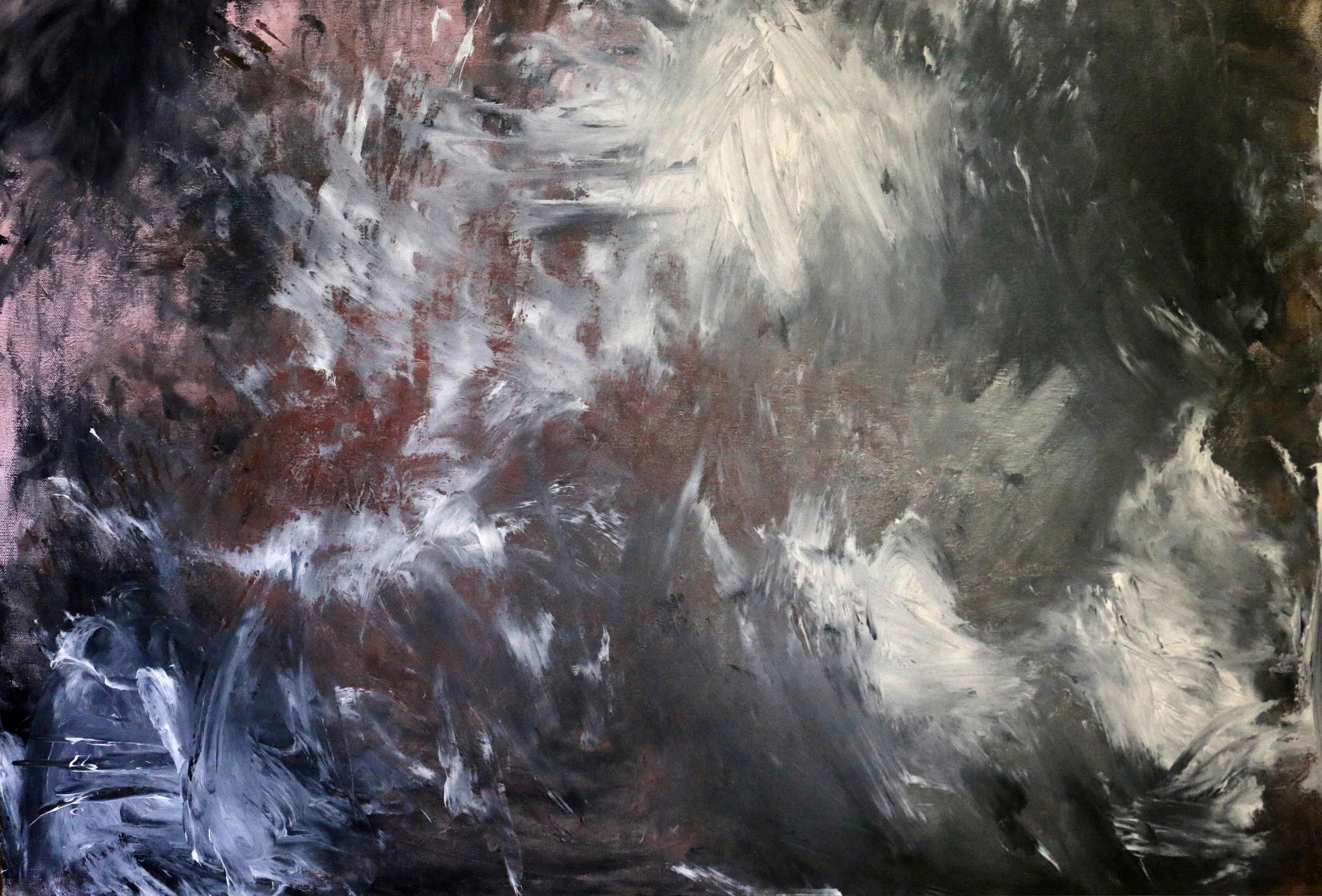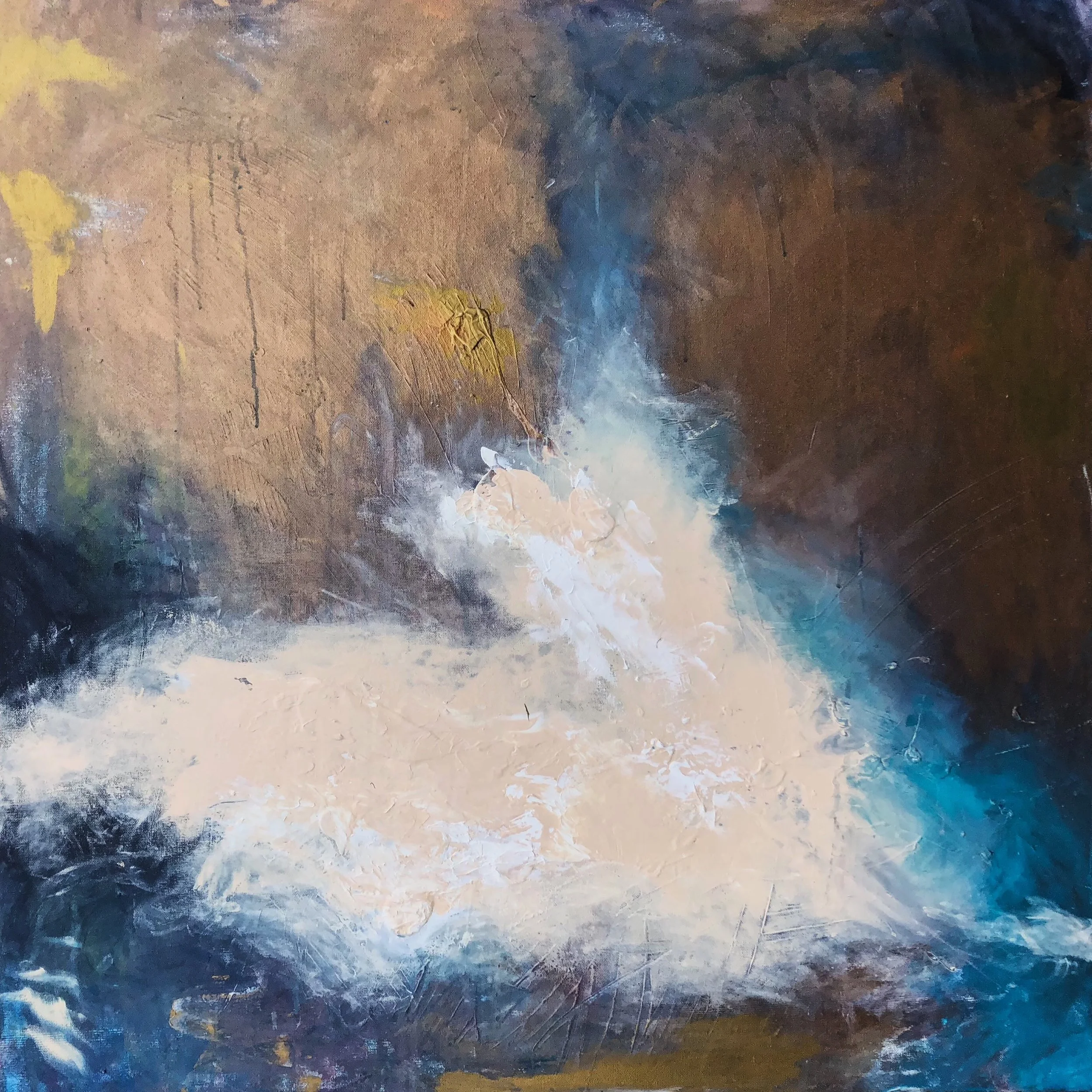 Alex Reacting To Water, Chance process pulled from video documentations, Polyptych, 36x48, oil on canvas